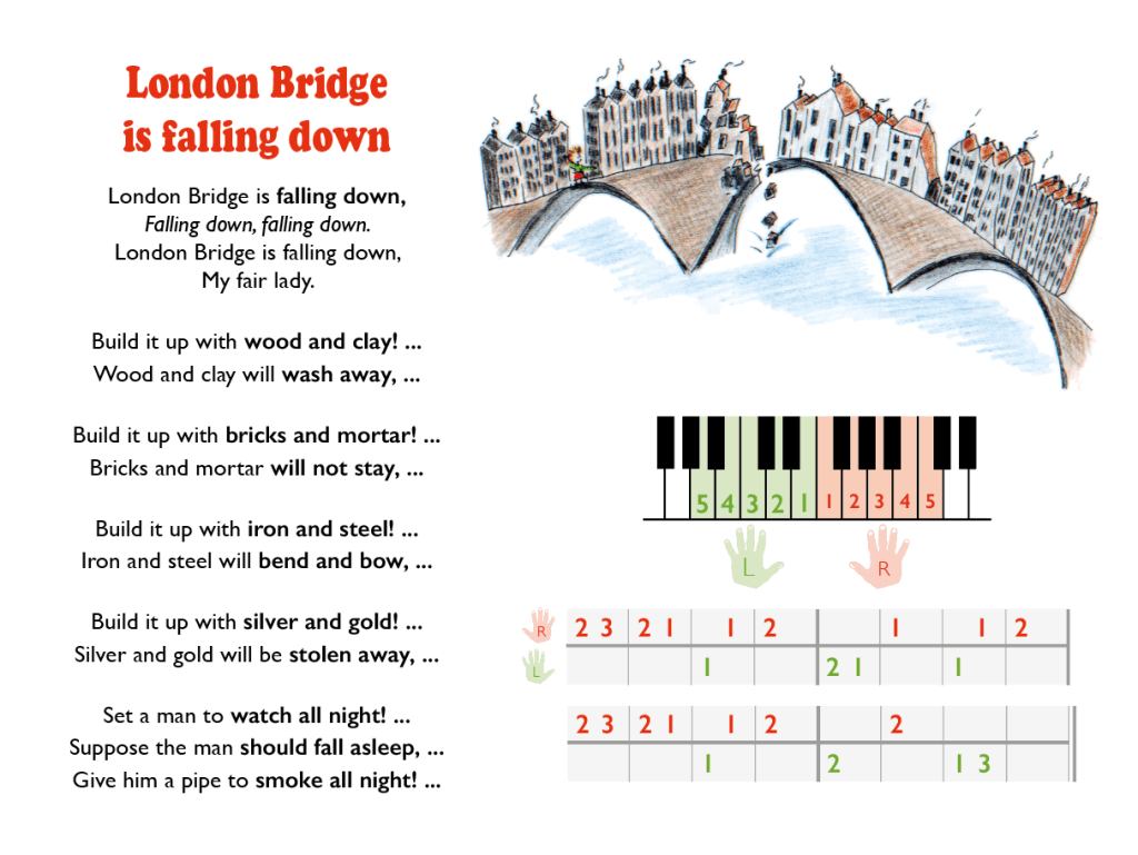 The Bumper Book of Children’s Songs contains 40 favourite children’s songs for piano beginners to play either solo or as duets (by TWO absolute beginners) – half as hard and twice the fun! All songs include playful illustrations and the words, so beginners can sing and play.